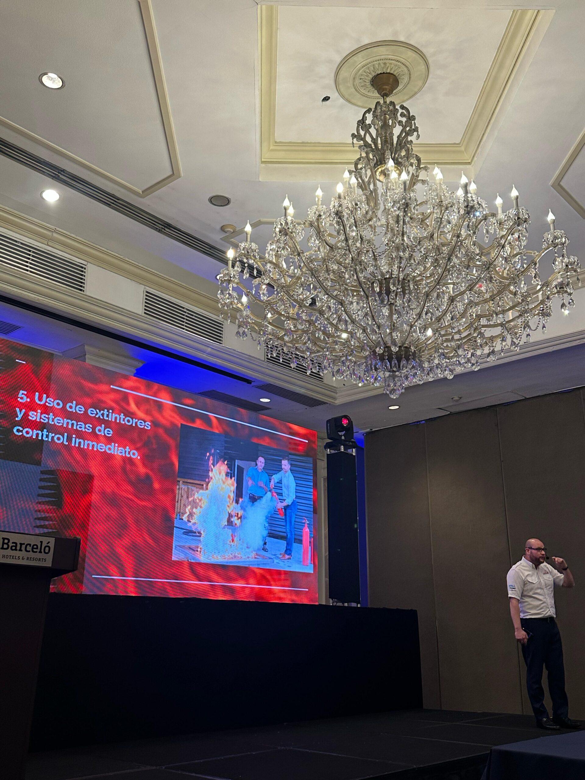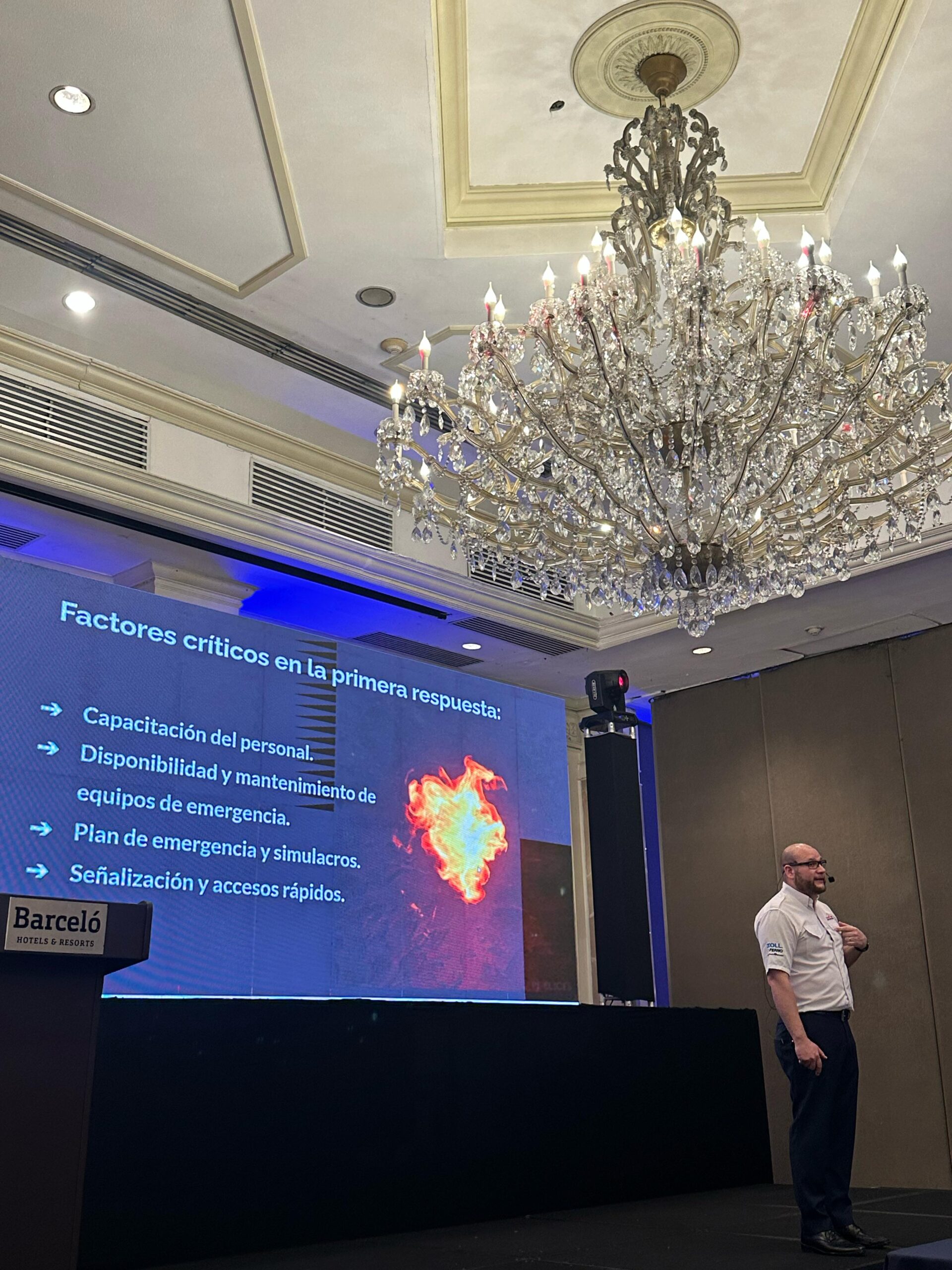 “Paro cardiaco y uso de DEA según AHA” y “La importancia de la primera respuesta ante un incendio industrial”, fueron las charlas que realizó Claudio, con una gran convocatoria. Los participantes venían de diversos sectores, como representantes de alto nivel del gobierno salvadoreño, embajadas, bomberos, policías, servicios de salud e ingenieros en prevención. La recepción fue cálida y entusiasta, gracias a la propuesta dinámica de nuestro experto.